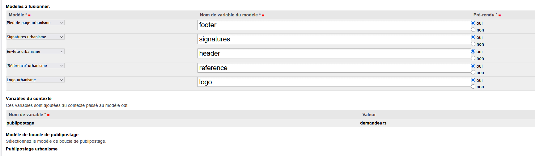 Modèle de boucle de publipostage : choisissez “publipostage urbanisme” si vous êtes dans le cas de l’urbanisme et environnement si vous êtes dans le cas de l’environnemment.