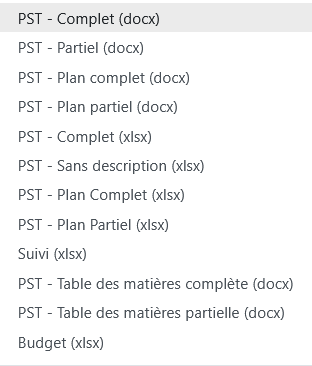 Remarque : Lors de la génération du document PST - complet (docx), si celui-ci génère un document lourd, d’une taille importante, l’application envoie un mail à l’utilisateur avec le document en pièce jointe.