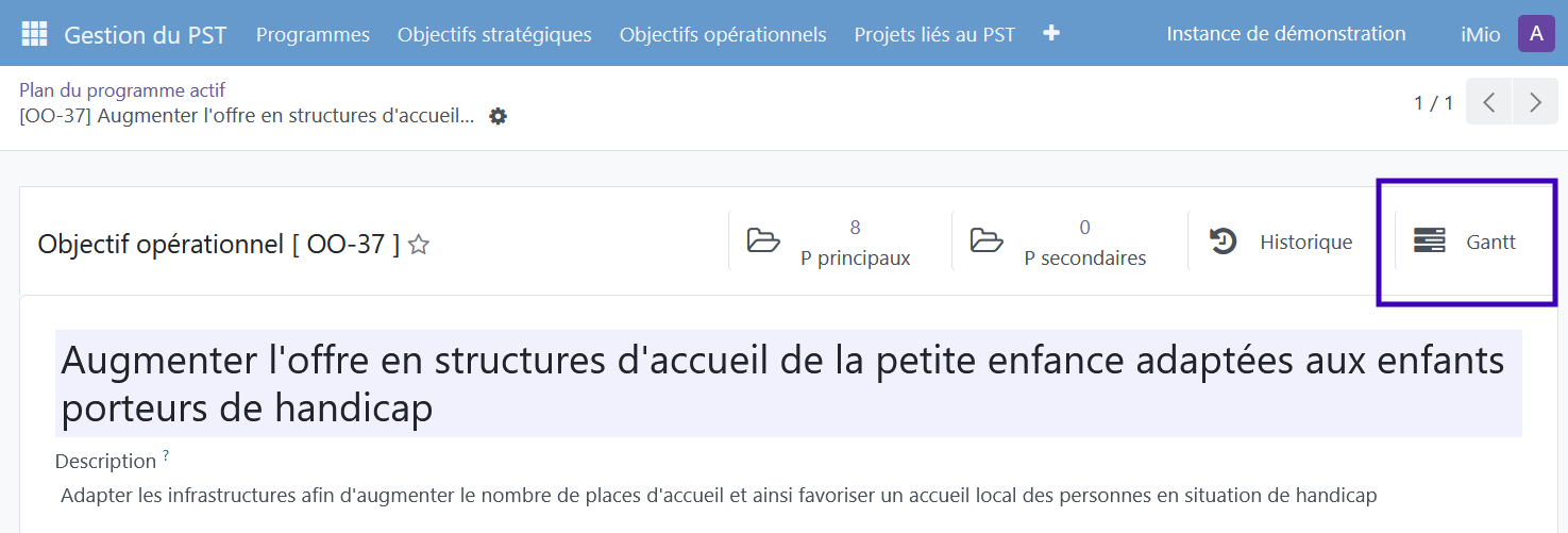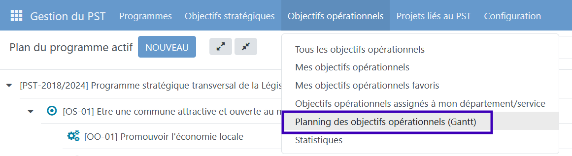 du module Gestion du PST - Menu “Objectifs opérationnels” - Sous-menu “Planning des objectifs opérationnels (Gantt)”