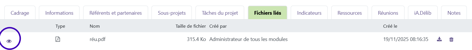 Une icône “oeil” a été ajoutée pour visualiser le document avant de le télécharger.